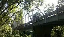 It spans the Deep River in North Carolina, United States between the hamlets of Gulf in Chatham County and Cumnock in Lee County in a quiet rural setting amid woods and farmlands on both sides of the river.[2] It was originally constructed in 1901.[3] The bridge is listed on the National Register of Historic Places.[4] The bridge is open to pedestrian traffic only. Vehicles may use a replacement bridge located about a hundred yards east of the historic structure.