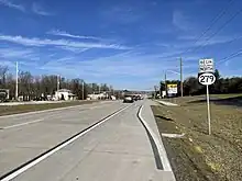 What is now DE 279 was originally an unimproved county road.[6] From the 1910s to the 1938, it was part of a branch of the Lincoln Highway,[7] and part of the Capitol Trail,[8] which ran from Atlanta through Washington, D.C., passing through Delaware by way of Newark, Wilmington, and Claymont, before terminating in Philadelphia.[9][10] By 1924, the road was paved.[11] In 1925, suggestions were made for the state to take over maintenance of the highway connecting the Maryland state line to Newark.[12][13] In 1927, the state took over maintenance of the highway between the Maryland state line and Newark.[14] When Delaware designated its state highways by 1936, the current alignment of DE 279 was designated as the westernmost part of DE 2, which ran from the Maryland state line through Newark and continued east to Wilmington.[15] The portion of DE 2 along Elkton Road between the Maryland state line and Newark was widened into a divided highway in 1972.[16] In 2013, DelDOT proposed the renumbering of routes in and around Newark, which involved truncating DE 2 from the Maryland state line to the eastern edge of Newark and the removal of DE 2 Bus. through downtown Newark. As a result of these changes, the portion of Elkton Road between the Maryland state line and DE 4/DE 896 (Christiana Parkway) was to be designated as DE 279, matching the route number across the Maryland state line. The goal of the project was to "simplify the route designations in Newark, reduce sign clutter, and reduce sign maintenance costs." The changes were completed in the middle part of 2013.[2]
