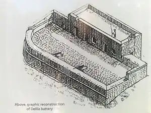 Dellia Battery was built in 1715 as part of the Order of Saint John's first building program of batteries and redoubts around the coasts of Malta. It was one of two batteries defending Xemxija Bay, the other one being Arrias Battery, which is still in existence.[1]
