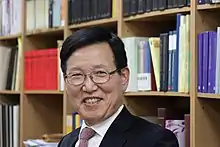 Deokkyo Oh was born in Boryeong, South Chungcheong Province, South Korea in 1952. He studied theology at Chongshin University (BA), Graduate School of Theology (M.Div.), and graduate school (Th.M.). He was ordained as a pastor at the Chungnam Presbytery Church in 1978. He joined the Air Force to serve as the chaplain of the Air Force until 1981. He worked as a full-time lecturer at Chongshin University School of Theology in 1981. In September 1982 he began to study in Westminster Theological Seminary in Philadelphia. In 1987 he became the first Korean to get Ph.D. in Westminster Theological Seminary. His dissertation title was "the Churches Resurrection : John Cotton’s Eschatological Understanding of the Ecclesiastical Reformation". After returning to South Korea, he taught church history for 27 years. From 2005 to 2009, he served as the 7th President of Hapdong Theological Seminary. He was a research fellow at Yale University Divinity School in 1986, and visiting professor at Westminster Theological Seminary in 1992-1993, and Stellenbosch University of South Africa in 2000. He was the president of the Presbyterian Theological Society of Korea in 2014. From February 2014 to 2017, he served as the President of the International University of Ulaanbaatar in Mongolia. In recognition of its contribution to the development of the Mongolian education, the Mongolian government gave him the best educator award in 2017. He was nominated as the theologian of the year from the Memorial Association of the 500th anniversary of the birth of John Calvin.[5] Since 2015 he has been a member of South Korea's National Unification Advisory Council. He is a member of the editorial committee for Unio cum Christo: An International Reformed Journal on Faith and Life.[6]