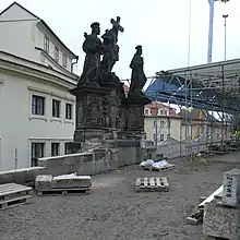 Reconstruction of the Charles Bridge in Prague showing numbered dimension blocks.