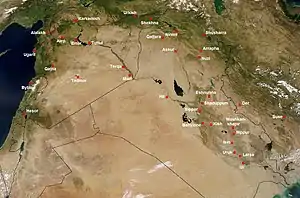 The end of the Amorite period was marked by the destruction of its two great kingdoms by the Hittites, who had reunited the kingdoms of eastern Anatolia in the last decades of the 17th century. At the same time, the Hurrians began to found increasingly powerful political entities, culminating in the formation of the kingdom of Mitanni. To these two were added Egypt. After the 18th dynasty had driven out the Hyksos, they invaded several decades later the Levant, expanding their empire their, bordering Mitanni. This marked a new era, with larger, more powerful, and more culturally diverse kingdoms.[8] Most of the ancient Amorite kingdoms became vassals of the new rulers, with the exception of Babylon, which remained an important power under the Kassites (1595-1155). The sovereigns of these dominant kingdoms were considered as "great kings", equal among each other. Beginning in the 14th century, Assyria replaced Mitanni in this group. Elam could also be considered one of the great kingdoms of this period, at least in the 13th and 12th centuries. The diplomatic practices of this period are known thanks to several collections of exceptional importance: those of Hattusa, the Hittite capital (letters, diplomatic accords, historical chronicles), the letters of Amarna, in Egypt (international correspondence of the pharaohs Amenhotep III and Akhenaton), and the royal archives of Ugarit, a minor Syrian kingdom controlled first by Egypt and later by the Hittites.[9] It is during this period that international relations are documented by the most abundant and geographically diverse sources.