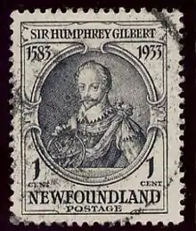 Newfoundland postage stamp, featuring Sir Humphrey Gilbert.