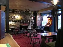 A pub, archaically known as a "public house", is an establishment licensed to serve alcoholic drinks for consumption on the premises in countries and regions of British influence.[2][3] Although the terms are increasingly used to refer to the same thing, there is a definite difference between pubs, bars, inns, taverns and lounges where alcohol is served commercially. A pub that offers lodging may be called an inn or (more recently) hotel in the United Kingdom. Today, many pubs in the UK, Canada and Australia with the word "inn" or "hotel" in their names no longer offer accommodation, and in some cases have never done so. Some pubs bear the name of "hotel" because they are in countries where stringent anti-drinking laws were once in force. In Scotland until 1976,[5] only hotels could serve alcohol on Sundays. In Wales, an 1881 Act applied the same law until 1961 when local polls could lift such a ban in a district and in 1996 the last ban was lifted in Dwyfor. The need for such polls was removed by the Welsh Assembly in 2003.[6][7]