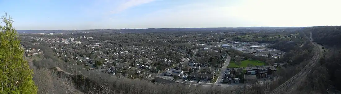 Panoramic view of Dundas, East-West, from the Dundas Peak
