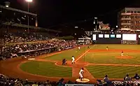 In addition to hosting the Bulls, DBAP has also been host to other baseball events since its opening. These include hosting eight ACC Baseball Tournaments, hosting the Triple-A All-Star Game in 2014, and hosting the Triple-A National Championship Game in 2012. In the 2012 Triple-A National Championship Game, the Pacific Coast League's Reno Aces defeated the International League's Pawtucket Red Sox, 10–3.[24] In the 2014 Triple-A All-Star Game, the International League All-Stars defeated the Pacific Coast League All-Stars, 7–3.[25] Perhaps the most significant game during any of the events was an 18-inning contest between the UNC Tar Heels and the NC State Wolfpack during the 2013 ACC tournament semifinals. It set records for both the largest attendance for a college baseball game in NC with 11,392 attending, and the longest baseball game in ACC tournament history.[10]