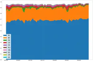 Evolution of the origin of viewers on the Dutch Wikipedia