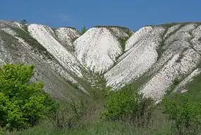 The limestone rock and soils of the chalk steppe creates a unique ecosystem. The park is the habitat of plant species including Artemisia nutans, Artemisia salsoloides, Artemisia hololeuca, Hyssopus cretaceus, Scrophularia cretacea, Matthiola fragrans, Linum usitatissimum, and Androsace koso-poljanskii. 30% of the plant species are endemic to the area.