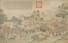 "The Victory of Khorgos". The partisans of Amursana were defeated in 1758 by Prince Cäbdan-jab. Painting by Jean Denis Attiret.[45]
