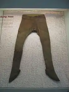 Many aspects of clothing in the period remain unknown. This is partly because only the wealthy were buried with clothing; it was rather the custom that most people were buried in burial shrouds, also called winding sheets.[2] Fully dressed burial may have been regarded as a pagan custom, and an impoverished family was probably glad to keep a serviceable set of clothing in use.[3] Clothes were expensive for all except the richest in this period.