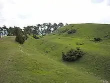 In military engineering, earthworks are, more specifically, types of fortifications constructed from soil. Although soil is not very strong, it is cheap enough that huge quantities can be used, generating formidable structures. Examples of older earthwork fortifications include moats, sod walls, motte-and-bailey castles, and hill forts. Modern examples include trenches and berms.