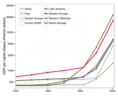 The conceptual foundations of the Malthusian theory were formed by Thomas Malthus,[90] and a modern representation of these approach is provided by Ashraf and Galor.[91] In line with the predictions of the Malthusian theory, a cross-country analysis finds a significant positive effect of the technological level on population density and an insignificant effect on income per capita significantly over the years 1–1500.[91]