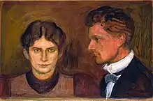 Harald Nørregaard (with his wife, painted by Munch in 1899, National Gallery) was one of Munch's closest friends since adolescence, adviser and lawyer.[71]