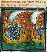 On 2 July 1270, Louis' host finally embarked from Aigues-Mortes.[53] The fleet was led by Florent de Varennes, who was the first Admiral of France, appointed in 1269. They sailed with a large, well-organized fleet, with the king stating: