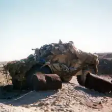 The Eland continued to enjoy distinction in SADF service, especially with the 1 Special Service Battalion and 61 Mechanised Infantry Battalion Group.[11][13] During Operation Protea and Operation Askari in 1981 and 1983, respectively, Eland-90s proved capable of eliminating Cuban and FAPLA T-34-85[32] and T-54/55[33] tanks at close range.[34] The SADF began to gradually retire its Elands beginning in the mid-1980s, replacing them with the larger and notably more dependable Ratel-90 and Ratel-60 infantry fighting vehicles, which could carry the same armament but also a squad of infantry.[27]