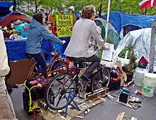 - ↑ With Generators Gone, Wall Street Protesters Try Bicycle Power, Colin Moynihan, New York Times, 30 October 2011; accessed 2 November 2011