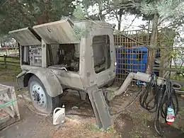 An engine-generator is the combination of an electrical generator and an engine (prime mover) mounted together to form a single piece of self-contained equipment. The engines used are usually piston engines, but gas turbines can also be used, and there are even hybrid diesel-gas units, called dual-fuel units. Many different versions of engine-generators are available - ranging from very small portable petrol powered sets to large turbine installations. The primary advantage of engine-generators is the ability to independently supply electricity, allowing the units to serve as backup power sources.[20]