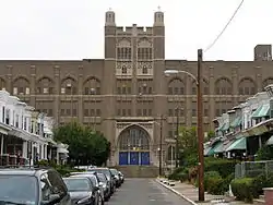Elizabeth Duane Gillespie Junior High School is a historic junior high school building located in the Nicetown–Tioga neighborhood of Philadelphia, Pennsylvania. It was designed by Irwin T. Catharine and built in 1925–1927. It is a four-story, 17 bay, brick building on a raised basement in the Late Gothic Revival-style. It features projecting end pavilions, arched openings, and a large stone Gothic entryway.[2] It was named for president of the Colonial Dames of Pennsylvania and Flag Day founder Elizabeth Duane Gillespie.