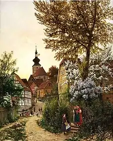 That same year, he achieved his first artistic success when his painting, "Im Hochwalde", was awarded a prize at an Academy art exhibition in Berlin. In 1875, he was employed as a teacher at the Weimar Princely Free Drawing School. Later, from 1882 to 1891, he was a teacher of free-hand drawing at his alma mater, the Grand-Ducal School. During this time, he also taught at the Königliches Gymnasium (Royal High School) in Erfurt. In 1890, he was awarded the title of Professor by Charles Alexander, Grand Duke of Saxe-Weimar-Eisenach.[1]