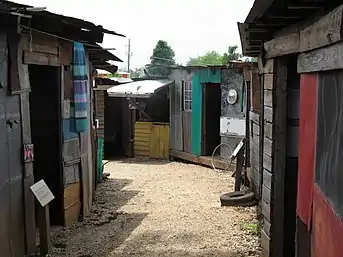 In 2020, 95.8 percent of the total population in South Asia, and 99.7 percent of the urban population, had access to electricity, making it the second-largest region in the world with an electricity access deficit.[46] However, in India only ten percent of homes in a village must be connected to the electricity grid in order for that entire village to be considered electrified.[47] Other complications that lead to energy poverty include: flaws in the energy system that result in power losses, load shedding practices that shut down the grid during peak periods, and power that is stolen through informal electricity lines.[48][49]
