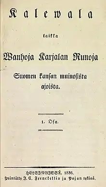 The first edition (1835) of the Finnish national epic poem Kalevala by Elias Lönnrot