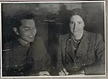 Unfortunately, his parents had been murdered in Auschwitz,[1][2] but he was able to locate his sister, who had survived Dachau[3] and was living in Brussels, Belgium. His brother Max had also moved to Brussels and survived the war by living "underground", i.e., in hiding with his wife. Their daughter, Ruth,[4] had survived by being adopted and cared for by foster parents. His brother Willy had also survived by joining the Free French Foreign Legion and fighting the Nazis in the Sahara, in particular, at Tobruk. The fate of his brother Alfred is unclear, but he did not survive the war and may have died in Minsk.[5]