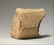Another clay record of Esarhaddon's restoration of Babylon. Exhibited at the Metropolitan Museum of Art.