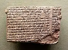 Etana (𒂊𒋫𒈾, E.TA.NA) was the thirteenth king of the first dynasty of Kish, according to the Sumerian King List. He is listed as the successor of Arwium, the son of Mashda, as king of Kish. The list also calls Etana "the shepherd, who ascended to heaven and consolidated all the foreign countries", and states that he ruled 1,560 years (some copies read 635) before being succeeded by his son Balih, said to have ruled 400 years. The kings on the early part of the SKL are usually not considered historical, except when they are mentioned in contemporary Early Dynastic documents. Etana is not one of them.[1]