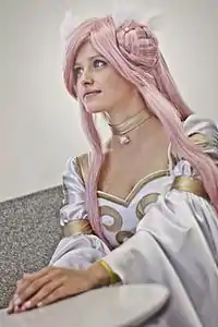 Euphemia's popularity has made her a frequent subject of cosplay, causing a trend in which female fans of Code Geass attempt to replicate her iconic look.[26][27] In August 2012, Euphemia was ranked in 8th place in the Most Tragic Heroine Character poll by Crunchyroll.[28] In October 2016, Euphemia, along with Cornelia, was ranked in 9th place in the Top 10 Cute Anime Sisters by Crunchyroll.[29] In February 2016, Euphemia and Suzaku took 1st place among the 13 Best Anime Couples by IGN.[30]