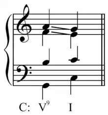 Voice leading for dominant ninth chords in the common practice period.[10] Play