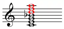 In music, extended chords are certain chords (built from thirds) or triads with notes extended, or added, beyond the seventh. Ninth, eleventh, and thirteenth chords are extended chords.[2] The thirteenth is the farthest extension diatonically possible as, by that point, all seven tonal degrees are represented within the chord (the next extension, the fifteenth, is the same as the root of the chord). In practice however, extended chords do not typically use all the chord members; when it is not altered, the fifth is often omitted, as are notes between the seventh and the highest note (i.e., the ninth is often omitted in an eleventh chord; the ninth and eleventh are usually omitted in a thirteenth chord), unless they are altered to give a special texture.[3][4]