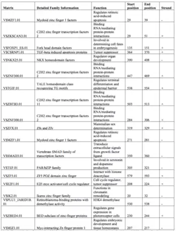 Genomatrix's ElDorado program predicts a promoter for FAM76A that is named GXP_71042 and is 679 base pairs. It is located on chromosome 1, starting at 27725479 and ending at 27726157. GXP_71042 overlaps with the start of the coding sequence of FAM76A.[23] There are several transcription factors that bind to this promoter. Many of the transcription factors that bind to the promoter region of FAM76A have function dealing with blood cells, the immune system, and leukocytes—perhaps suggesting that FAM76A is involved in immune function. It would also appear that the most common matrix families include C2H2 zinc fingers and myeloid zinc fingers, suggesting that these matrix families may be heavily involved in FAM76A transcription.