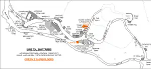 In later years, Green leased part or the whole of his premises to other builders, notably William Patterson Jr. (son of the SS Great Britain's builder) 1869-70, George A. Miller 1871-73 and probably J. & W. Peters during 1862-73. Green closed in 1873,[3] and the dock and shipyard were taken over by George A. Miller, eventually closing in 1883 when it was bought by the Bristol Corporation and filled in to improve the quayside.[4]