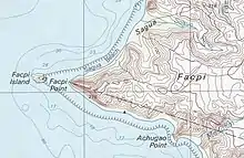 Facpi Point is a headland in the south-west of the island of Guam. It is 3 km (2 mi) due west of Mount Lamlam, and 5 km (3 mi) north of Umatac village. The point was designated a National Natural Landmark in 1972.[1] Facpi Point marks the southern end of Agat Bay, as well as an end point of the boundary between the villages of Agat and Umatac. A small islet, Facpi Island, is off the tip of the point.