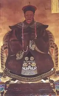 | Yongqi 永琪 1741–1766 Prince Rongchun of the First Rank 榮純親王 | Yongyan 顒琰 1760–1820 ![]() Jiaqing 嘉慶 Renzong 仁宗 r.1796–1820 | Yonglin 永璘 1766–1820 Prince Qingxi of the First Rank 慶僖親王 | |||||||||||||||||||||||||||||||||||||||||||||||||||||||||||||||||||