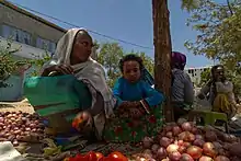 In 2020, Russia and Ukraine accounted for a combined total of 81% of Ethiopia's wheat imports (66% being imported from the former and 15% from the latter);[80] in June 2022, roughly 42% of Ethiopia's grain was imported from these two countries (15% from Russia and 27% from Ukraine).[81] The Russian invasion of Ukraine in February 2022 exacerbated the already existing food crisis in the country, as it disrupted supply chains and caused food prices to significantly increase.[82]