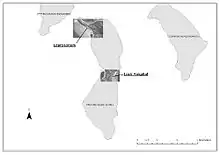 Fantome Island, also known by its Aboriginal name of Eumilli, is one of 13 islands that form part of the Great Palm Island group. It has an area of just 7.8 square kilometres (3.0 sq mi). It is located 65 kilometres (40 mi) north-north-west of Townsville. The historical occupation of the site is centred on two sections of the island - the lazaret is located on the low-lying coastal areas at the northern end of the Island; and the lock hospital site is located 3 kilometres (1.9 mi) south-east of the lazaret, at the centre of the Island. The archaeological remains of the sites have been interpreted according to historical research conducted prior to the site visit.[1][86]