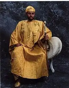 Traditional Yoruba dress uses fine beads and textiles to reflect social status and religious affiliation as well as personal identity and taste, Gold and other jewelry is also worn by Yoruba women.[3]