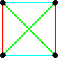 The simplest affine plane contains only four points; it is called the affine plane of order 2. (The order of an affine plane is the number of points on any line, see below.) Since no three are collinear, any pair of points determines a unique line, and so this plane contains six lines. It corresponds to a tetrahedron where non-intersecting edges are considered "parallel", or a square where not only opposite sides, but also diagonals are considered "parallel".