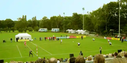 At the 1913 German Gymnastics Festival in Leipzig, the first German men's championships were held,[1] where LLB Frankfurt won against 1879 MTV Munich, winning 114:101. Due to the First World War, no German Championships were held between 1914 and 1920. In 1921, the first women's fistball championship was held, with Hamburger Turnerschaft emerging victorious against TV Krefeld, winning 91:90. Fistball, while still a game affiliated to the Gymnastics Association, began to grow independently. In 1927, almost 12,000 teams played organized fistball in Germany.