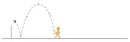 If the ball is set for the attack by hitting the ball in the air and allowing for a bounce, this is called an indirect set. The setter has to calculate the trajectory of the hit so that the bounce is at its highest point approximately 2.5 - 3.0 m in height, as this is the most effective height for an attacker to jump and strike the ball over the net. The field conditions, distance to the net and possibly the wind direction all have to be taken into account when performing the set. In addition, the ball should ideally have some forward spin so that the attacker can use this forward momentum in his or her attacking hit.