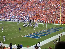 The Florida Gators football program represents the University of Florida (UF) in American college football. Florida competes in the Football Bowl Subdivision (FBS) of the National Collegiate Athletic Association (NCAA) and the Eastern Division of the Southeastern Conference (SEC) They play their home games on Steve Spurrier-Florida Field at Ben Hill Griffin Stadium on the university's Gainesville campus.