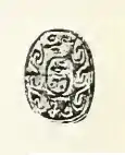 The order of rulers for this dynasty is established by the Turin Royal Canon and is widely accepted – except for the first five rulers, which are given below after Ryholt.[1] The names of these rulers are not given on the Turin Canon (except for perhaps one), and Ryholt proposes that they were mentioned as wsf in the list, which denotes a lacuna in the original document from which the list was copied during the Ramesside period.[1] Rather, Ryholt identifies the first five kings thanks to a seriation of their seals. His conclusions are debated, however, in Ben Tor's study of the strata levels, in which seals attributed to the first five kings have been found. Ben Tor concludes that the reigns of Sheshi, 'Ammu, and Yakbim date to the second half of the Hyksos 15th Dynasty, and are not contemporary with the 13th Dynasty. According to Ben Tor, these kings were most likely minor vassal rulers of the Hyksos kings that ruled over the Nile Delta.[3]