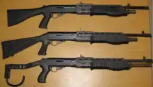 The Franchi SPAS-12 came equipped with a non-adjustable circular aperture rear sight and a large, non-adjustable blade foresight integrated into the barrel. The LAW-12 was semi-automatic only and the SAS-12 was a pump-action only. These three "sister" shotguns accepted all SPAS-12 components, notably trigger groups, barrel threaded attachments and stocks. The various magazine extension tubes of the LAW-12 and SAS-12 were never designed to be interchangeable with the SPAS-12 as this would cause issues with the gas selector switch moving from auto to pump-action on the SPAS-12 model.[7] The extensions have been known to spin off the front of the SPAS-12 during cycling if the extension was not tapered for the SPAS-12 retaining pin.