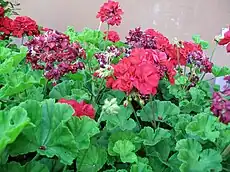 Zonal pelargoniums are examples of free-flowering plants, which bloom profusely throughout the year.[1]