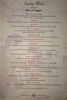 A tasting menu, "Best of Gaggan", in 2015