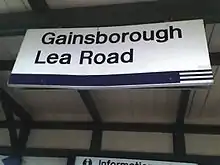 Gainsborough Lea Road is one of two railway stations that serve the town of Gainsborough in Lincolnshire, England, the other being Gainsborough Central, which is located in the town centre. The station is managed by East Midlands Railway and is located 14+14 miles (23 km) northwest of Lincoln Central on the A156 Lea Road in the south of the town. It opened in 1867 on a single line of the Great Northern Railway, who ran four trains a day from Gainsborough to Lincoln.[1]
