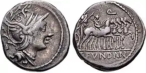 ![]() Reverse of a denarius of 101 BC, depicting Marius as triumphator in a chariot | |