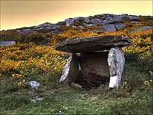 Later on, some 6,500 years ago, a new population arrived from the Mediterranean, bringing agriculture and husbandry with them. Half of the woodland was razed to pasture and farmland, almost replacing all of the woodland some 5,000 years ago.[33] This new population also changed the landscape with the first permanent human structures, megaliths such as menhirs and barrows, cromlechs and menhirs. During the Neolithic Galicia was one of the foci of Atlantic European Megalithic Culture,[34] putting in contact the Mediterranean and south Iberia with the rest of Atlantic Europe.[35]