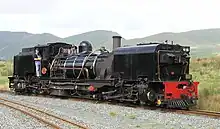 The Tasmanian Railways stipulated two features that were not in Herbert Garratt's original concept. The first was a compound configuration in which two high-pressure cylinders were on the rear engine unit and a pipe led to two larger, low-pressure cylinders on the front engine unit. The second was to have the cylinders facing inwards, which would reduce the distances between both the main steam pipe and the high-pressure cylinders and between the high-pressure and low-pressure cylinders.[12] The latter feature made the locomotive unnecessarily complicated and placed the high-pressure cylinders directly underneath the cab, making it uncomfortably hot for the crew on the rare days when Tasmania's West Coast Range was warm. Only one more Garratt locomotive was produced with compound propulsion (by Beyer, Peacock & Co. in 1927 for Burma Railways).[13] The company built no more Garratts with inward-facing cylinders, but two Garratts operated by the Southern Fuegian tourist railway at Ushuaia in Argentina, largely based on the K class, have that feature.[7][note 2]